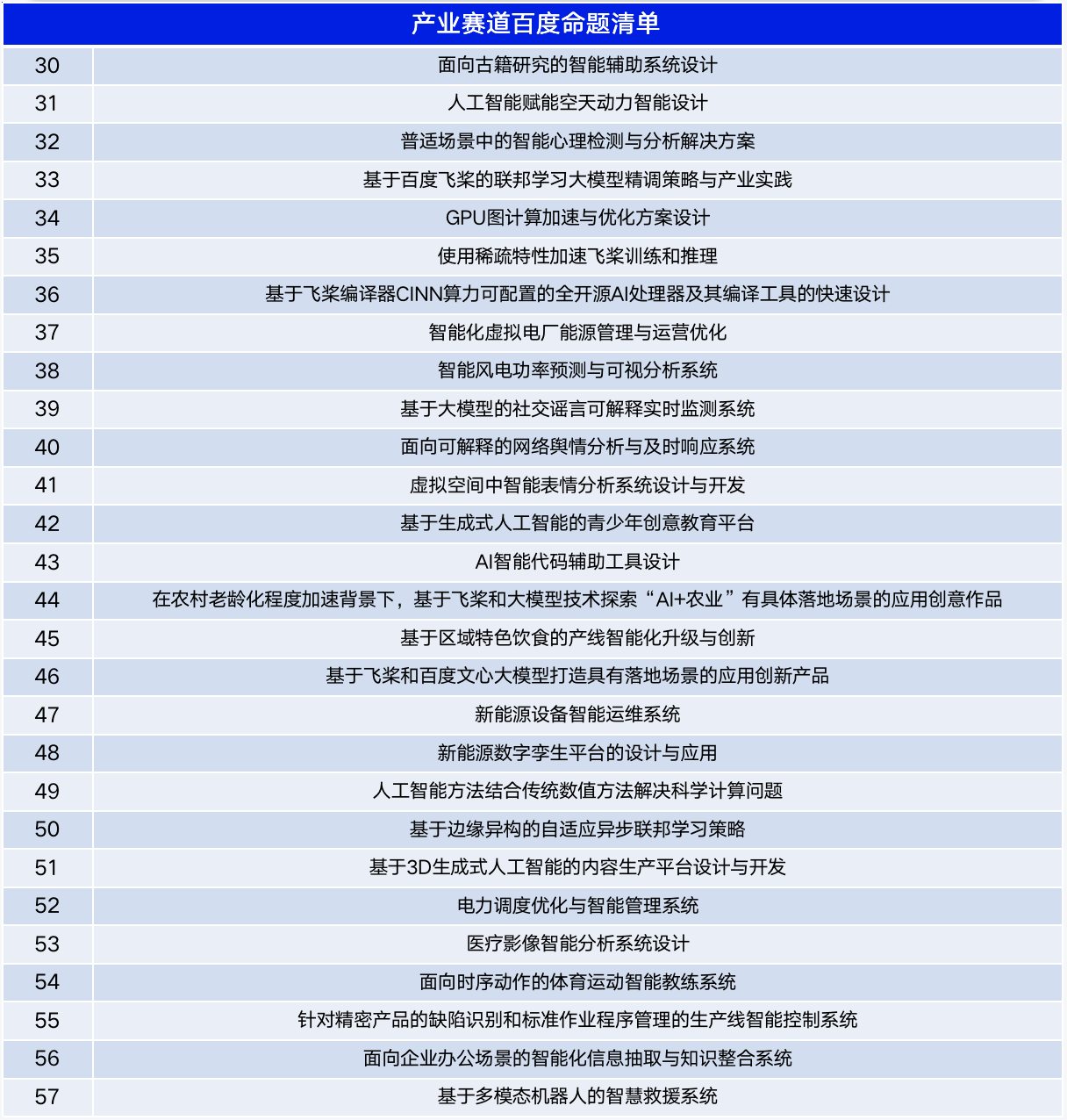 2023年6月28日,中国国际“互联网+”大学生创新创业大赛组委会正式发布了《关于公布第九届中国国际“互联网+”大学生创新创业大赛产业命题赛道入选命题的通知》,百度共有五十七道命题成功入围产业赛道,入围数居全国前列。